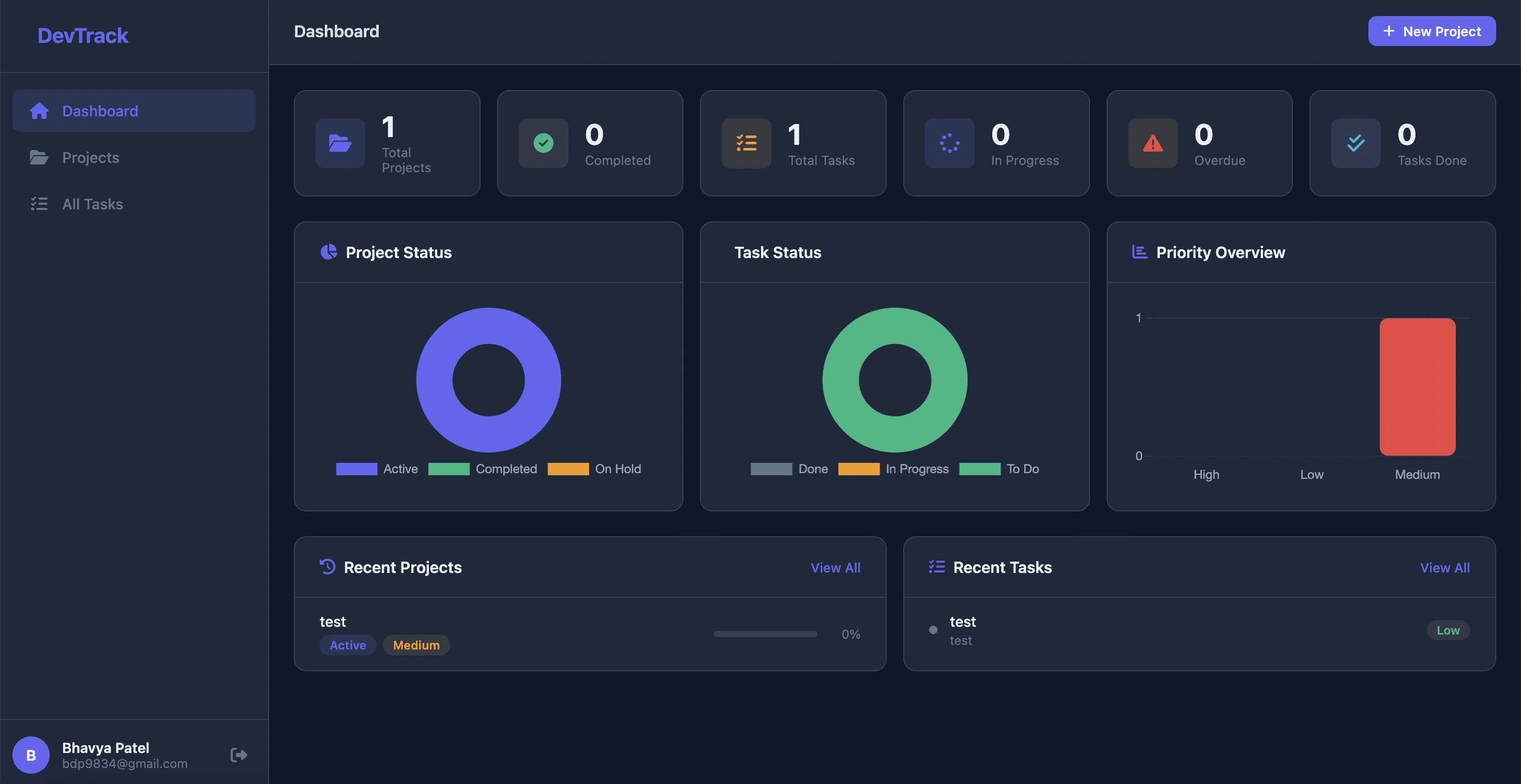 DevTrack - Project Management Dashboard